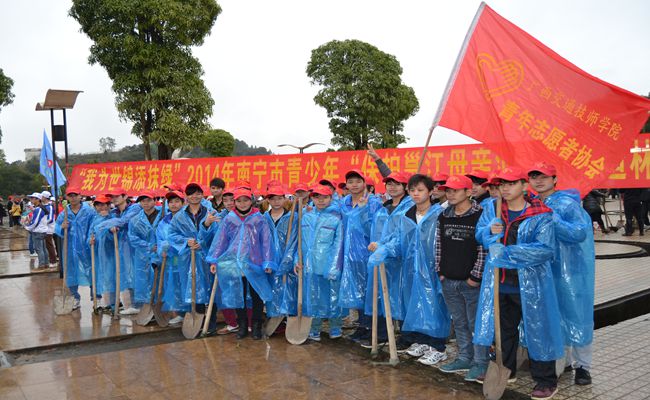 3月11日上午,我院青年(nián)誌願者在學院團委楊霜老師、學生工(gōng)作處蘇啟棠(táng)老師和(hé)覃柳紅老師的帶領下,參加了由共青團南寧市委組織開(kāi)展的“我為世錦添光彩”2014年南(nán)寧市青少年“保(bǎo)護邕江母親(qīn)河”植樹造林統一(yī)行動日活動。