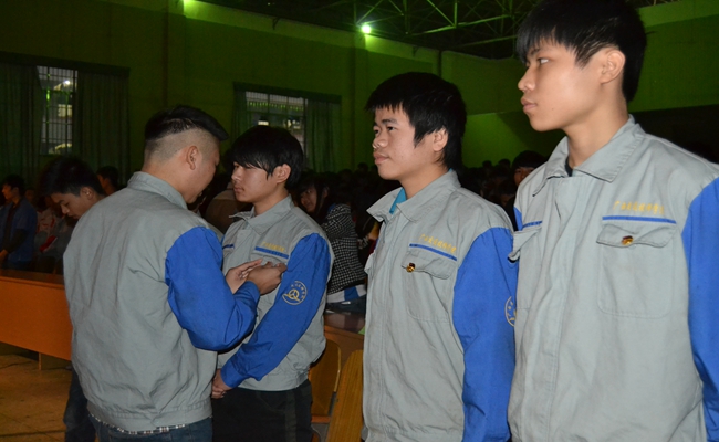 團支書給新團員帶團徽
