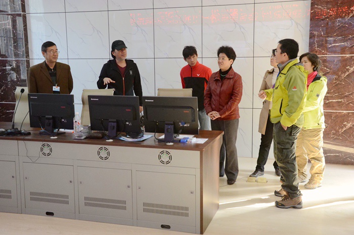 廖麗娟總編(左四)、葉瑞偉導演(左(zuǒ)二(èr))在我院信息與監控中(zhōng)心參觀