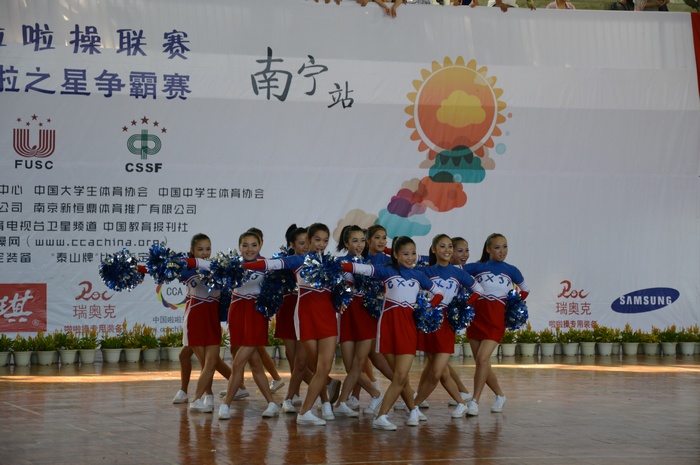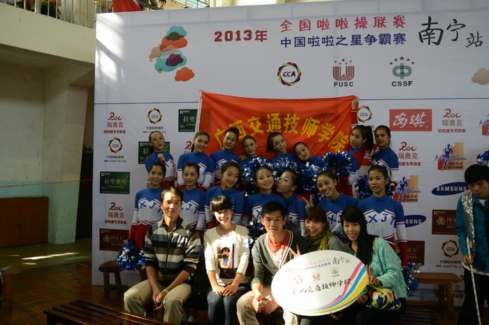 2013年全國啦啦操聯賽廣西分賽區(南寧站)比賽於(yú)11月2至3日在廣西大學體育(yù)館舉行。來自全區大中專院校、中小學校、幼兒園等單位153支隊(duì)伍,共計2859名(míng)選手對舞蹈啦啦(lā)操、健美操大眾標(biāo)準、街舞健身操以及民族健身操等項目展開角逐。