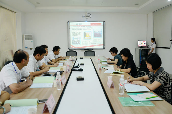 廣西教育廳職成處副調研員、檢查小(xiǎo)組領隊李春春(chūn)聽取項目建設工作匯報並針對具體問題提出建議