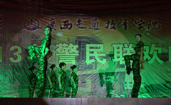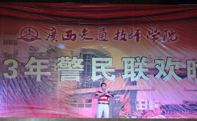 為(wéi)了活躍(yuè)2013級新生(shēng)的校園生活,展現軍訓教官和我(wǒ)院師生的風采,我院團委於(yú)9月(yuè)12日晚在燈光球場舉辦了我院2013年警民聯歡晚會。我院韋紅教院長,鍾修仁副院(yuàn)長,武警一支(zhī)隊覃振周(zhōu)中隊(duì)長親等臨現場觀看晚會。