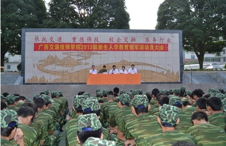 9月8日上午,我校2013級新生軍訓動員(yuán)大會在燈光球場隆重舉行,學校鍾修仁副校長、廣西武警一支隊覃振周中隊長及教官(guān)、各新生班級(jí)班主任(rèn)和全體(tǐ)2013級新生參加了本次(cì)大會。
