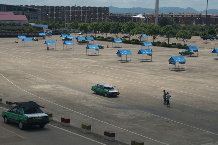 圖3:該校駕駛訓練場一隅及教練車上的特(tè)色“遮陽帽”
