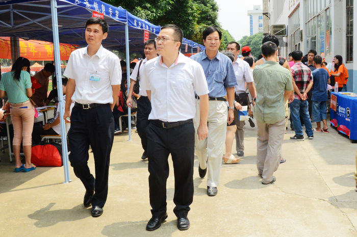 8月31日是(shì)我院2013級新生入學報到的(de)日子,學院迎新工作全(quán)麵展開,各項接待措施層層到位,迎新(xīn)工作順利進行,整個校園都沉(chén)浸在繁忙與熱鬧的氣氛中。自治區人社廳職(zhí)業能力建設處覃朝(cháo)俊副處長、陳振成主任來到我院視察工作,參觀了我院監控(kòng)中心和演播中心(xīn),充分肯定我院今(jīn)年的招生工作和校園建設(shè)成果。