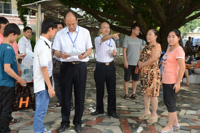 學院羅華書記(右四)、關菲明副院長(右五)在(zài)為家長和學生答疑