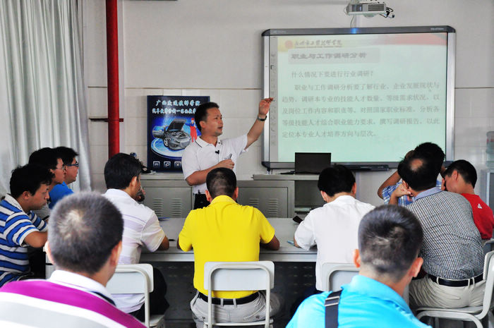 此次培訓邀請(qǐng)了(le)廣東三向職業培訓學院副(fù)院(yuàn)長羅小川、廣州市工貿技師學院汽車係主(zhǔ)任劉熾平(píng)、廣州市工貿技師學院汽車維修(xiū)專業教師徐建等(děng)多位專家為學員們開展了為期三天的培訓。培訓內容包括(kuò)“一體化(huà)課程開發(fā)的思路和步驟”、“一體化課程體係的構(gòu)建與實施(shī)”、“一體化課程資(zī)源庫的建設”以(yǐ)及“一體(tǐ)化課程組(zǔ)織和管理的(de)方式”等。此次高級研修班將專題講座(zuò)與學員之間積(jī)極互動融入培(péi)訓全過程,深化(huà)學員們對汽車檢測與維修專業一體化課程理解的同時,進一步強(qiáng)化(huà)其對“一(yī)體化課程”各個組成部分和階段的整體(tǐ)把握。整個培訓(xùn)以(yǐ)其實用性、高效性得到學員們的一(yī)致好(hǎo)評,收效甚好。