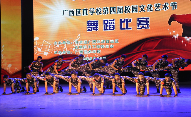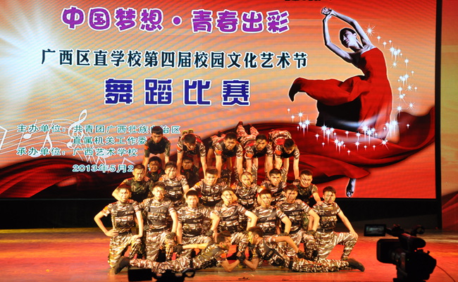 5月24日(rì)晚,“中國夢想•青春出彩”第四屆廣西區直學校文化藝術節舞(wǔ)蹈比(bǐ)賽在廣西藝術學校舉行(háng)。我院選(xuǎn)送舞蹈《中國軍魂》在此次比賽中榮獲(huò)一等獎。