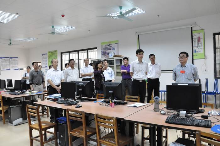 我院考察團一行(háng)參觀了(le)廣西石化(huà)高級技工學校普車實訓中心、數控實訓中心、機械設備安裝與維修中心、電力拖動綜合實訓室、機電(diàn)一體化實(shí)訓中心(xīn)、維修電(diàn)工實訓室、綜合實訓大樓等實訓場地以及該校的校史展覽室。該校完善的(de)教學(xué)設施設備和嚴謹的教學管理給我院考察團留下深刻印象。