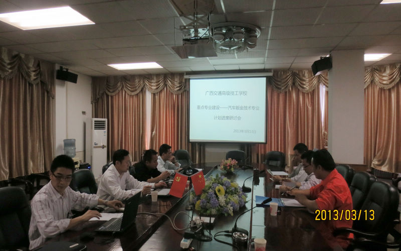 2013年3月13日下午,汽(qì)車工程係示(shì)範校重點專(zhuān)業建設——汽車鈑金技術(shù)專業所有項目負責人,在學院辦公樓二樓會議室對該專業建設(shè)工作進度(dù)進行匯總,並(bìng)做(zuò)了下一階段的工作安排。會議主持人由韋軍新副主(zhǔ)任負責,參會人員有(yǒu):馮培林、羅宗港、張俊華等八位汽車(chē)鈑金專業教師。