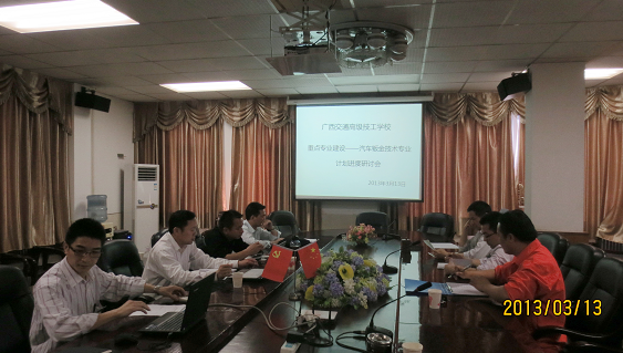 2013313日(rì)下午,汽車工程(chéng)係示範校重點專業建設——汽車鈑(bǎn)金技術專業有關負責人,在學校辦公樓二樓會議室(shì)對該(gāi)專業建設進度(dù)進行匯總,並做了下一階段的(de)工作安排。會議主持人由韋(wéi)軍新副主任負責,參會人員(yuán)有(yǒu):馮培林、羅宗港、張俊華等八位汽車鈑金專業(yè)教(jiāo)師(shī)。