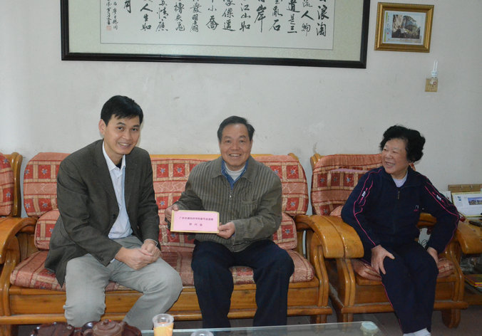 學院院長韋紅教到退休老職(zhí)工廖日賜家慰問