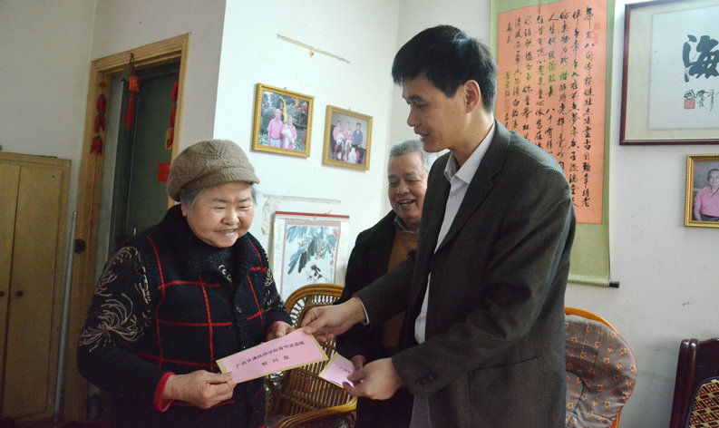 學院院長韋紅教為退(tuì)休職工黃洪(hóng)濤送去慰問金