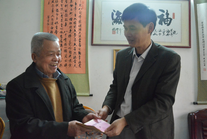 學院院(yuàn)長韋紅教為退休老(lǎo)職工陳漢英送去慰問金