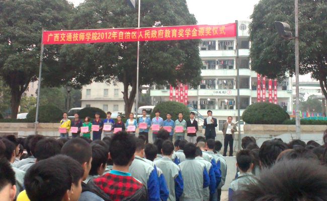 12月17日上午,我院燈光球場人潮湧動,2012年自治區人(rén)民政府教(jiāo)育獎學(xué)金頒獎儀式隆重舉(jǔ)行。學(xué)院副院長鍾修仁出席頒獎儀式並做重要講話,學生工作處領導和全體工作工作幹事、各在校班級班主(zhǔ)任及全體學生參加儀式,2010級汽車電氣維修高級工一班張健(jiàn)同學代表全體獲獎學生發言。