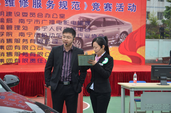 在城市交通成為全國性難題的今天,培養南寧市交通參與者(zhě)的文明意識、樹立(lì)交通運輸部門的(de)文明形象無疑會成為一大亮點。在這一契機上,11月22日—12月(yuè)12日在(zài)我院燈光球場隆重舉行(háng)的南寧市機動車維修行業“關愛生命 文明交通”《機動車維修(xiū)服務規範》競賽活(huó)動,無疑(yí)會為南寧文明(míng)形象增添亮(liàng)色,也為南寧交通運輸部門亮出(chū)一(yī)麵旗幟。此次競賽活動由南(nán)寧(níng)市文明委辦(bàn)公室、南寧市交通運(yùn)輸局、南寧市廣播電影電視局主辦,通過競(jìng)賽(sài)活動,促進了南寧市機動車維修行業整體服務水平和服務質量的提(tí)高,也推進了機動(dòng)車維修行業規範化發展的步伐。我院作(zuò)為協辦單位(wèi),廣大師生展示出了(le)積極協作、團結奉獻、神采奕奕的良好精神(shén)風貌,得到了主辦方以及參賽企業的高度讚揚和肯(kěn)定,我院被評(píng)為“優秀組織獎(jiǎng)”光榮稱號。