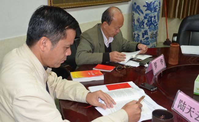 圖3:羅書記和陸副院長認真學(xué)習“報(bào)告”和黨章
