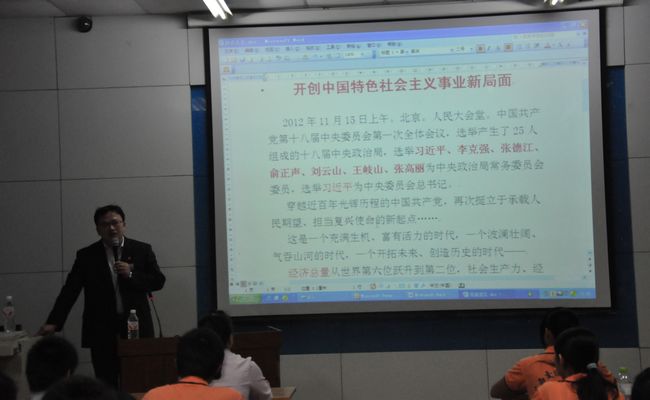 圖二:李毅主任結合“十八大”講述社會主義新局麵