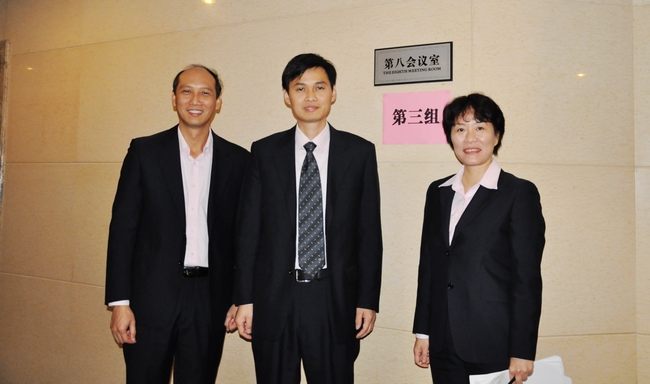 圖八:韋紅教(jiāo)院長(中)、關菲明副院長(左)、鄭超文主任(右)在答辯會場外合影