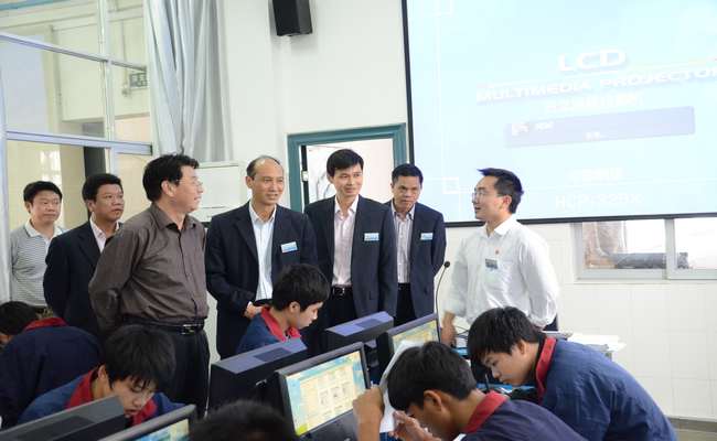 張留現組長一行與我院領導班子(zǐ)及中層領導幹部(bù)合影留念後,在韋紅教院長以及學院相關領導的陪同下實地參觀了學(xué)生食堂,對我院食堂的(de)衛(wèi)生工作表示滿意。隨後,一行人參觀(guān)了(le)汽車(chē)節能減排實驗中心、汽(qì)車電氣實訓中心、汽車故障診斷模擬仿真中心和汽車檢測(cè)與維修實訓中心等教學實訓(xùn)場所。在(zài)考察過程中,張留現組長不時向韋紅教(jiāo)院長(zhǎng)詢問我院(yuàn)開展職業(yè)技能培訓、教學管(guǎn)理、學生(shēng)管理和校企合作(zuò)等情況,並興致勃勃(bó)地深入課堂與師(shī)生親切交談,詳細詢問實訓內容、教學方法、教學效果和師生的學習生活(huó)等情況。