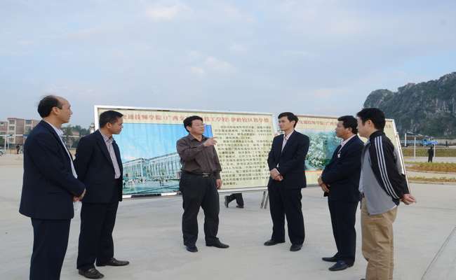 在武鳴伊嶺岩新校區建設場地上(shàng),韋紅教院長詳細(xì)地向張留現組長講解了建(jiàn)設規劃、工作進展(zhǎn)情況以(yǐ)及目前所存在的一(yī)些問題。