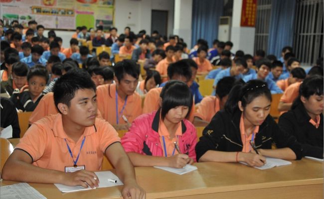 這些身穿工作(zuò)服、平日裏總在車(chē)間(jiān)緊張操作的技校生們,此時竟如此嚴肅而沉靜;他們個個全神貫注、認真聽講(jiǎng),仔細地聽老師講新課、說新知,微(wēi)笑著回答老師的提問,隨著羅書記的講(jiǎng)授時而凝思,時而神采飛揚。