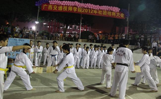 社團招聘活動場(chǎng)麵熱情高漲,人山人海(hǎi)。22個學生社團招聘接(jiē)待(dài)點井然(rán)有序。宣傳展板別致顯眼,橫幅高高掛起,迎風飄揚。各社團競相出新招,充(chōng)分展示本社(shè)團的優勢、特色與(yǔ)亮點,真可謂百花齊(qí)放,百家爭鳴。舞蹈協會和街舞協會現場表演吸引了不少舞蹈愛好(hǎo)者的青睞,表演聲形並茂,備受矚目。氣排球協會、羽毛球協會和籃球協會等現場展示球技表演,同(tóng)學們不時發出陣陣(zhèn)掌(zhǎng)聲。禮(lǐ)儀隊、啦啦操協(xié)會和汽車商務協會招新現場(chǎng),社團人員著裝整(zhěng)齊,朝氣逼人(rén),成(chéng)為新生關注的焦點之一,跆(tái)拳道協會(huì)現場踢板和搏(bó)擊協會的擒拿格鬥表演更是博得滿堂喝(hē)彩(cǎi)……