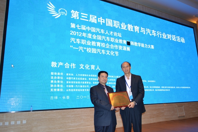 2012年9月22日至24日,由教育部、人力資源和社會保障部、文化部、中國機械工業聯合會為指導,中國汽車文化促進會、教育部職業技術教育(yù)中心研究所、中(zhōng)國職業技術教育(yù)學會(huì)、中國(guó)高等教育(yù)學會等單位聯合主辦的“第三(sān)屆中國職業教育與汽車行業發展(zhǎn)對話活動”在吉林長春舉(jǔ)行。