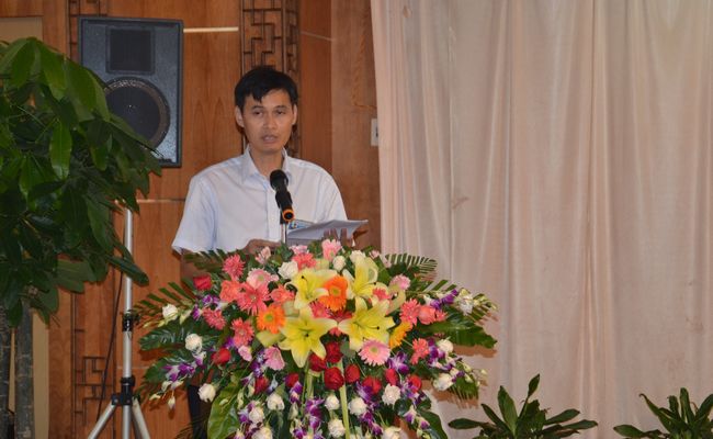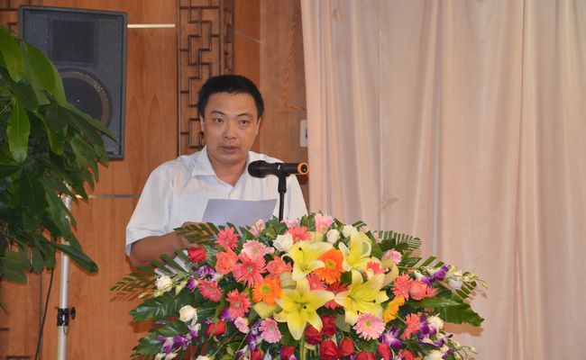 圖三:韋紅教院長在表彰會上作學院工作報告。