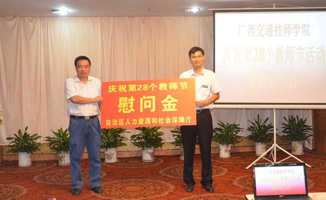 2012年9月10日下午,精品欧美一区二区在线看片技師學院隆重召開慶祝第28個教師節座談會暨優秀教師、優秀教育工作者表彰大會。自治區交通運輸廳黨組成員、總工程師王劼耘,自治區交通運輸廳科教處處長岑春,自治區人力資源和社會保(bǎo)障廳職業能力建設(shè)處副處長尹文鉞,自治區道路運輸管理局黨委書記孫永生等上級(jí)領導親臨校園,向學院(yuàn)全體教職員工送上了節日的(de)問候(hòu)。