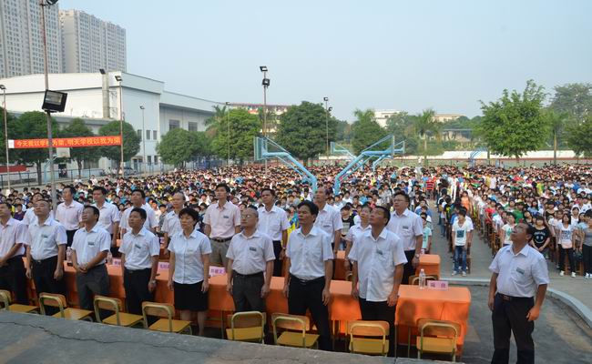 圖一(yī):全體師生起立舉行升國旗(qí)儀(yí)式