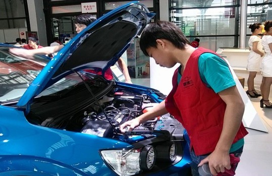 圖二:學生誌願者為(wéi)雪佛(fó)蘭汽車品牌清潔發動機