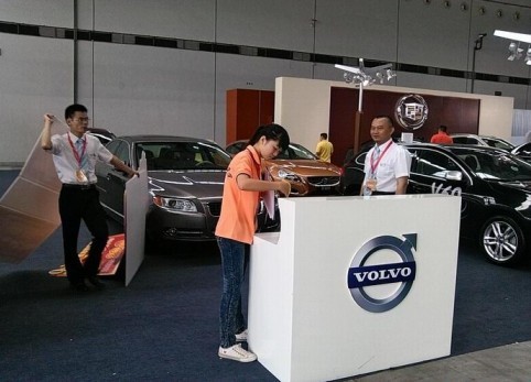 圖(tú)三:學生(shēng)誌(zhì)願者為沃(wò)爾沃汽車品牌(pái)做(zuò)好(hǎo)車展前準備工作(zuò)