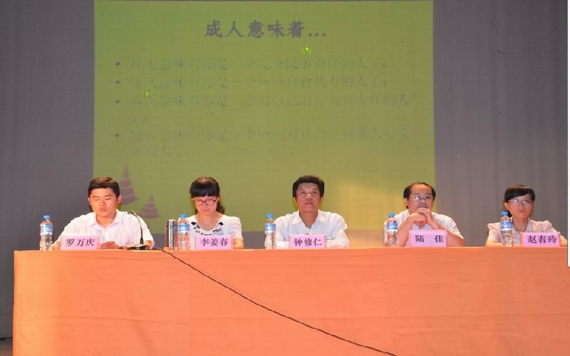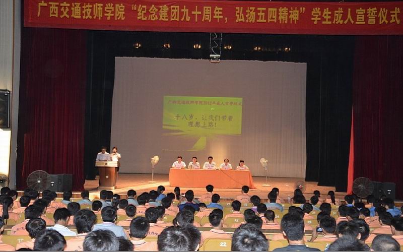 6月7日下午,我校(xiào)在校禮(lǐ)堂隆重舉行“紀念建團90周年,弘揚五四精神(shén)” 學(xué)生成人宣誓儀式,千餘名1994年出生的同(tóng)學右手握(wò)拳進行莊嚴宣誓,向社會、向父母、向老師宣告他們已經長大成人。鍾修仁副校長、學工處陸佳副(fù)主任、團委的各位老師和各班級的團支書來參(cān)加見證儀式,並為同學們送去成人祝福。