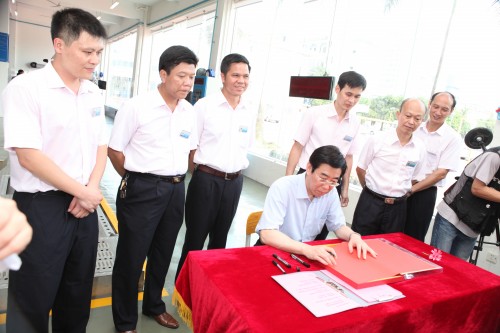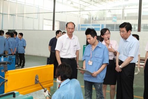 王曉(xiǎo)初副部長一行抵達學院後,與學院領導班子(zǐ)親切握手,並學院中層以上幹(gàn)部合影留念。接著,在宣傳展(zhǎn)版(bǎn)前聽(tīng)取了學院關於基本校情、伊嶺新校區規劃建設、教學改革成果、招生就學院校(xiào)企合作、職業培訓、學生管理等方麵的情況匯報。隨後,在學院(yuàn)院長韋紅教、黨委書記羅華的陪(péi)同下,王曉初副部長一行實地考(kǎo)察了學(xué)院校區、汽車鈑金與塗裝(北(běi)京史賓尼斯)實(shí)訓中心、汽車美容裝飾(龜博士)實訓中心、汽車營銷(北京運華天地)實訓中心、廣西高速公路收費員(廣西交投)培訓基地、汽車電氣(qì)(美國SPX公司)實訓中心、汽車故障診斷(上海景格)模擬(nǐ)仿真中心、汽車檢測與維修(北京現代)實訓中心、機(jī)動車駕駛培訓中心等教學(xué)實訓場所。