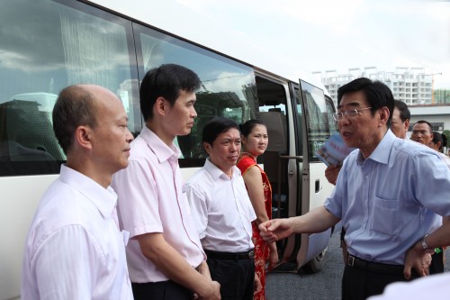 與自治區交(jiāo)通運輸廳、自治區道(dào)路運輸管理局領導、學校領導班(bān)子親切握手