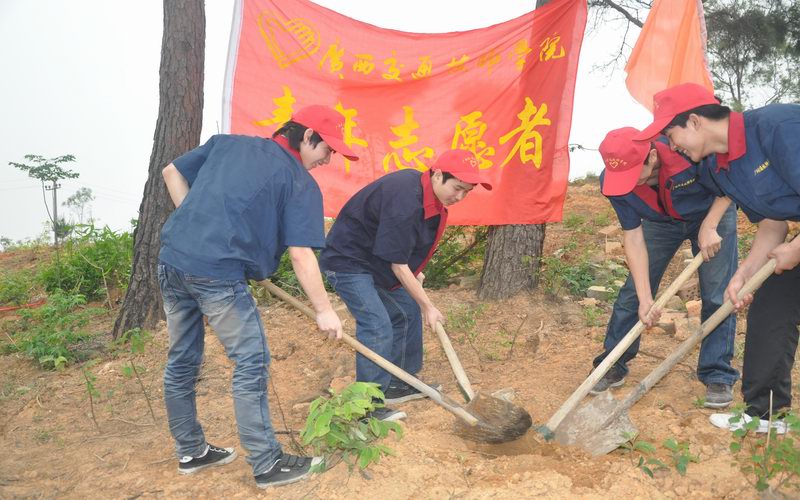 4月27日(rì)上午,我校五(wǔ)十名學生誌願(yuàn)者在學(xué)校黨委(wěi)書(shū)記羅華的帶領下,坐車前往興寧(níng)區五塘鎮參加由南寧市興寧(níng)區綠化委組織開展的義務植樹活動。