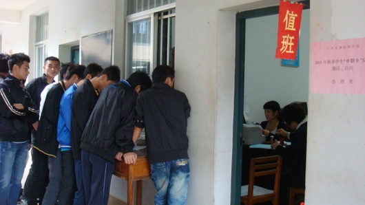 2011年10月(yuè)29日,學校(xiào)學生工(gōng)作處辦公室前人(rén)潮湧動,熱鬧非凡。2011級新生持有效證件排成長龍井然有(yǒu)序地辦理用於發放助學金補的中職學生資助卡激活手續。進入校園服務的中(zhōng)國(guó)工商銀行工作人員一一(yī)為前來領卡的學生辦理簽領手續,並耐(nài)心指(zhǐ)導學生激活、啟用中職學生資助卡(kǎ)。
