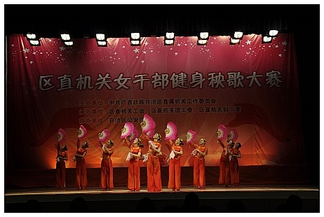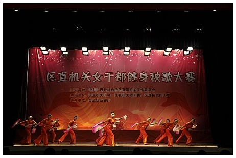根據自治區交通運輸廳直屬機關黨委、工會和自治區道路運輸管(guǎn)理(lǐ)局的要(yào)求,我校成立了由鍾翔鷹(yīng)、劉飛英(yīng)等12名女職(zhí)工組成的健身秧歌隊,利用業餘時間(jiān)刻苦訓練,精心準(zhǔn)備(bèi),於2010年12月28日晚代表自治區交通運輸廳(tīng)參加由中(zhōng)共廣西壯族自治區直屬機關工作委員會主辦的區(qū)直機關首(shǒu)屆女幹部健身秧歌(gē)大(dà)賽(sài)。我校參賽(sài)隊(duì)員在大賽中不懼強手,發(fā)揮(huī)優勢,展現(xiàn)優美舞姿,經過激(jī)烈角逐,榮獲大賽二等獎,為自(zì)治區交(jiāo)通運輸廳贏得了榮譽,出色(sè)完(wán)成了(le)上級下(xià)達的任務,彰顯了學校良好(hǎo)的(de)精神風貌(mào)和(hé)文(wén)化藝術(shù)風采。