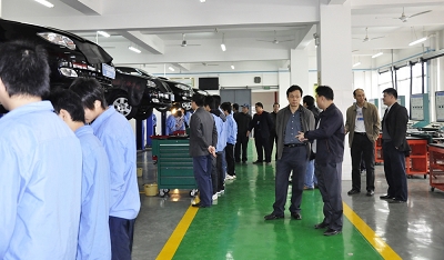圖(tú)八:柳州(zhōu)市(shì)交通學校的專業教師在參觀我校(xiào)汽車專業實訓基地(dì)