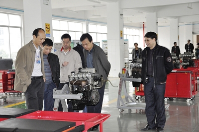 圖七:柳州市交通學校(xiào)的專業教師在參觀我校汽車二級維護實驗室