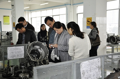 圖六:關菲明副校(xiào)長陪同考察團參觀參觀我校汽車發(fā)動機實驗室