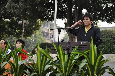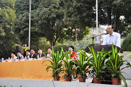 圖二:韋紅教校長宣布我校第21屆(jiè)校園運動會開幕