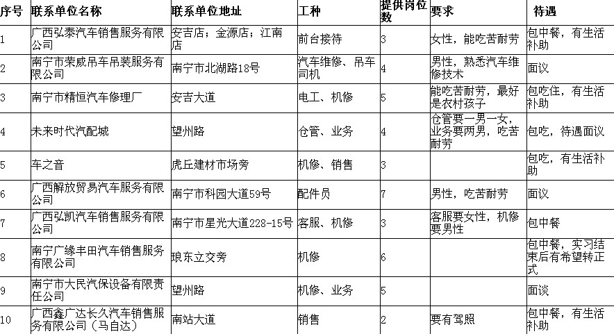 最新2010屆頂崗實習用工單位招聘信息一覽表