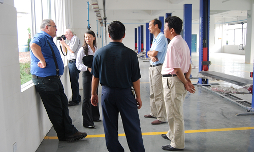 圖3孫校長陪同德國專家查看(kàn)教練車