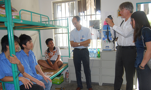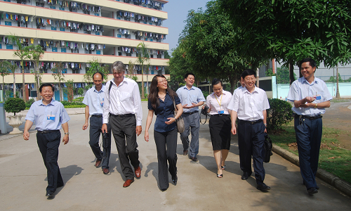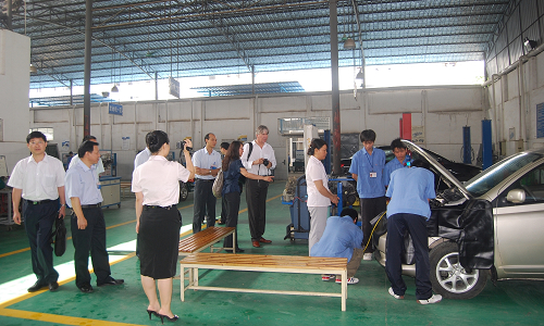 考察團一行到(dào)我校教室、實訓車間、食堂、學生宿舍等地參觀。在參觀我校實訓車間時,孫校長向德國專家詳細介紹了學校汽車專業實習設備及教學的相關情況。隨後,德國職業教育集團主席到學生宿舍參(cān)觀,同(tóng)我校學生親切交談並合(hé)影(yǐng)留念。
