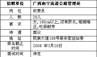 關於廣西南寧高速公(gōng)路管理(lǐ)處(chù)的用工信息